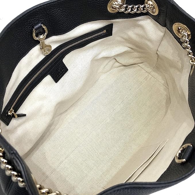 Gucci Soho 536196 Tote Bag, Black, Leather, Women's, Interlocking G, Fringe, Black