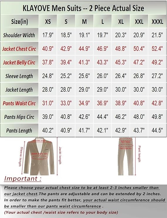 • Correct Size : Please check our suit's SIZE CHART carefully,Please only look at our size table in picture 2 and 3,Or you can send us an inquiry email, telling us your height, weight, chest circumference, and waist circumference and we will figure out which size is best for you.
