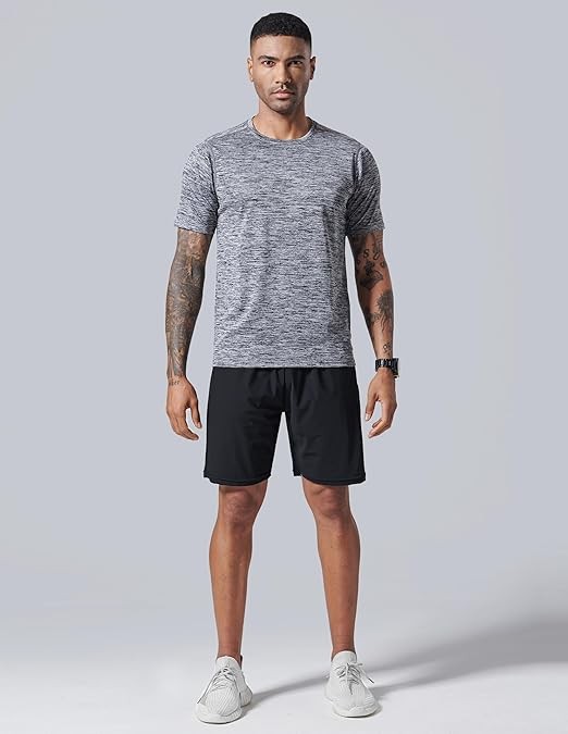 5 Pack Men’s Active Quick Dry Crew Neck T Shirts | Athletic Running Gym Workout Short Sleeve Tee Tops Bulk