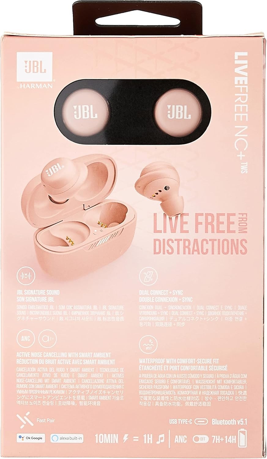 JBL JBLLIVTWSROS Live Free Noise Cancelling Plus True Wireless Sweatproof In-Ear Headphones, Up to 21 hours of battery life - Rose