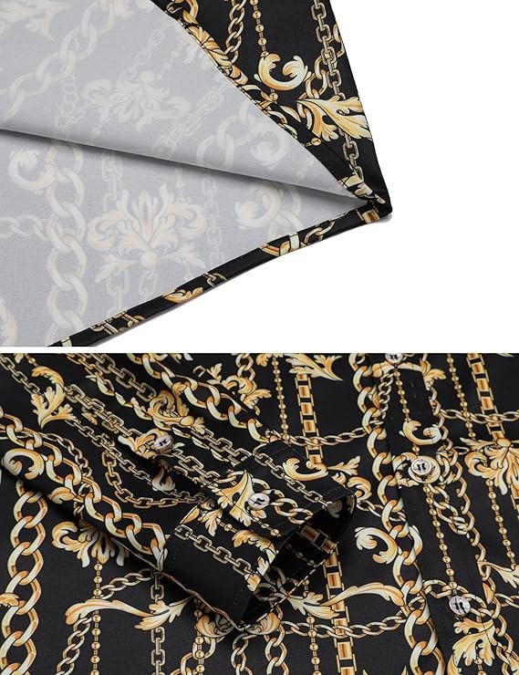 • Men's luxury design button down dress shirt, long sleeve, button down, luxury print, light fabric, suit for street wear, shows, party and daily life.
