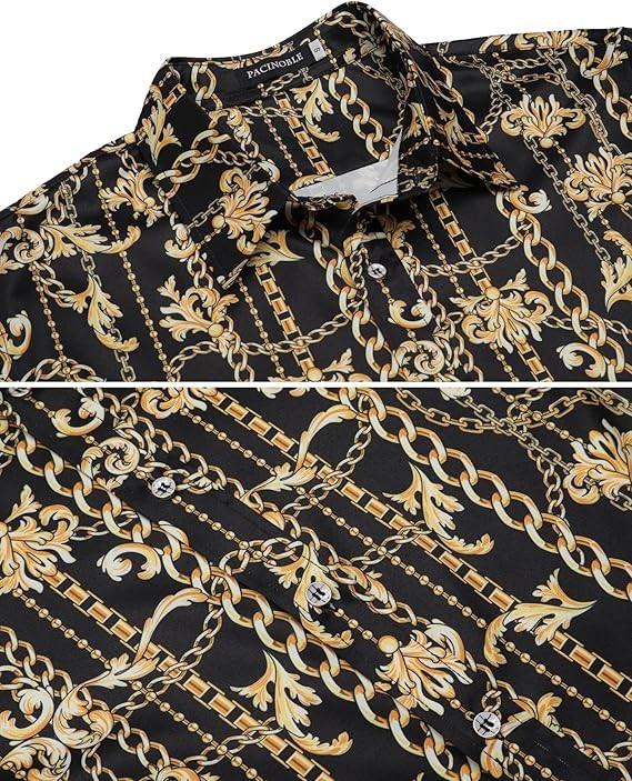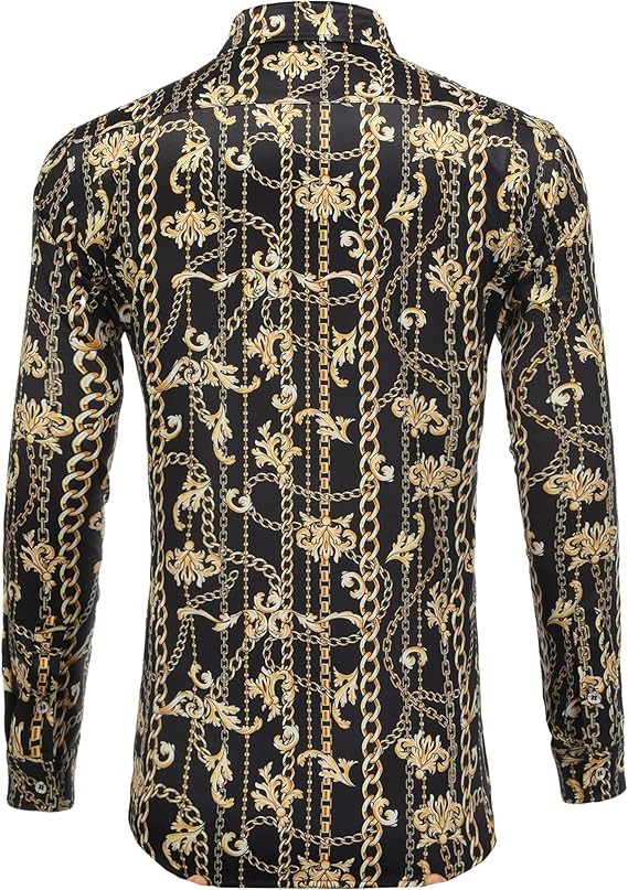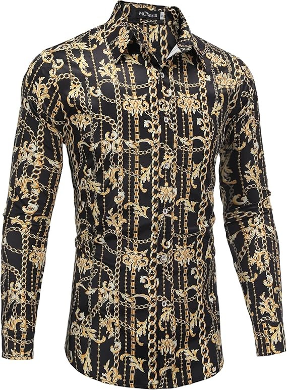 Pacinoble Mens Long Sleeve Fashion Luxury Design Print Dress Shirt